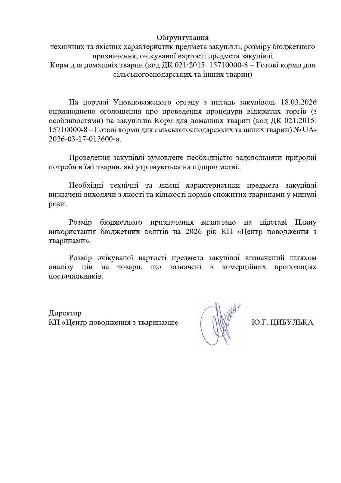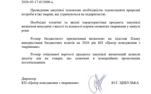 Обґрунтування закупівлі кормів для тварин на 2026 рік
